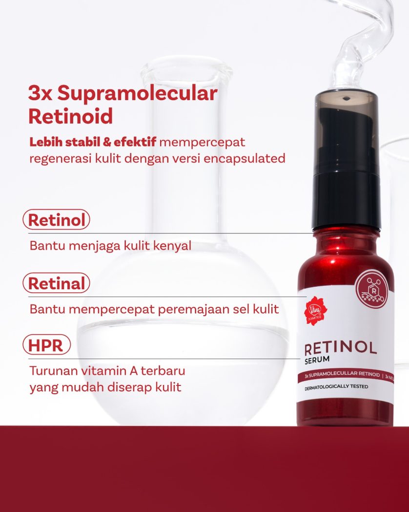 retinol dengan kandungan 3x Supramolecular Retinoid, 3x Natural Calming Active, dan 3x Ceramide